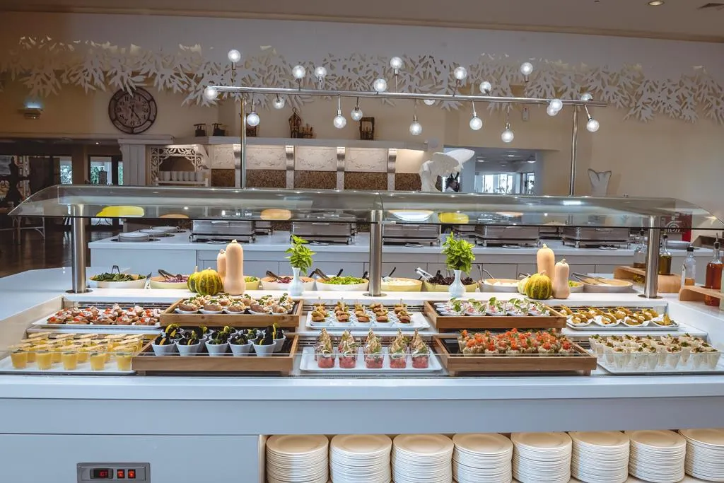 - 5 bars: binnenbar Asteri, open: 09:00-11:00, 17:00-24:00, zwembadbar Blue, open: 10:00-24:00, terrasbar Laguna, open: 10:00-18:00, strandbar Sun & Sea, open: 10:00-18:00 laag seizoen, 10:00-22:00 hoog seizoen en lobbybar Welcome Bar, open: 10:00-18:00