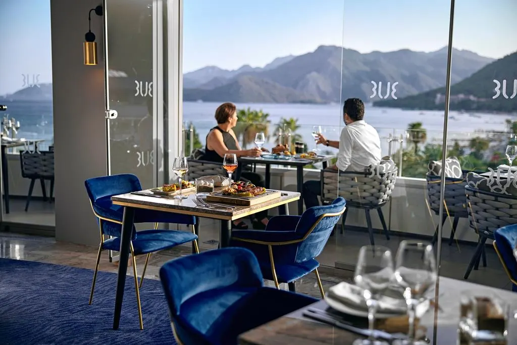 Een luxe hotel met klasse. Dat is TUI BLUE Grand Azur. Dit elegante hotel aan de boulevard van Marmaris heeft een toplocatie. De serene ambiance is een aangename verrassing als je het hotel binnenstapt. Een compleet andere ervaring als je terugkomt na een middagje in het centrum van Marmaris. Pamper jezelf met een bezoekje aan de sauna. Je bent hier in goede handen. En 's avonds reserveer je een tafeltje in het Levante à-la-carterestaurant. Zowel het eten als het uitzicht zijn fe-no-me-naal!